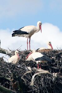 Aber auch große Wiesen, die regelmäßig überschwemmt werden und freie Ackerflächen zählen zu ihren bevorzugten Heimatadressen. In Wäldern ist der Storch nicht anzutreffen.