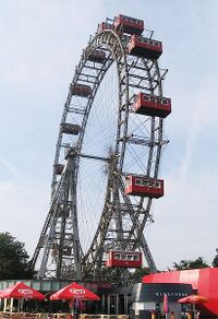 Im Prater steht auch ein Wiener Wahrzeichen, das 64,75 Meter hohe und 430 Tonnen schwere Riesenrad. Es wurde 1897 errichtet und hatte ursprünglich 30 Waggons. Im zweiten Weltkrieg wurde das Riesenrad beschädigt und zwischen 1945 und 47 wieder aufgebaut, jedoch hängen seither nur mehr 15 Waggons daran.