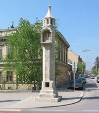 Beim Haus Linzer Straße 331 ist heute noch ein, mit Mosaikbildern geschmückter, viereckigen Pfeiler, zu sehen.