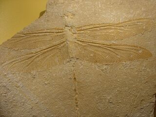 | Originaltitel | Abdruck einer Libelle in sehr feinkörnigem Kalkstein des Oberjura (wahrscheinlich Solnhofener Plattenkalk), ausgestellt im Museum Mensch und Natur, München. Man beachte die Überflieferung filigranster Strukturen, wie der Äderung der Flügel.