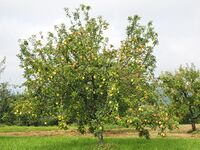 Die Pflanzung der jungen Bäume erfolgt in Reihen und nach Sorten. Außerdem werden die Bäume so zurückgeschnitten, dass sie nur wenig mehr als 1 m erreichen. Das erleichtert die Pflege und Ernte.
