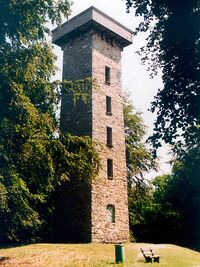 Der Aussichtsturm hat eine Höhe von 22,4 m. Über 122 Stufen kann die Aussichtsplattform erreicht werden.