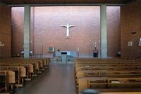 Errichtet wurde sie in den Jahren 1960 bis 1963. Sie ist ein Backsteinbau mit trapezartigem Grundriss und verglaster Eingangsfront.