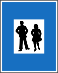 Ist das Hinweiszeichen mit einer roten Linie schräg durchgestrichen, wird damit das Ende zB einer Fußgängerzone oder eine Wohnstraße angegeben.